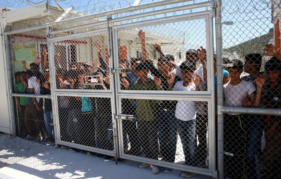 migrantes en Moria, en la isla de Lesbos, donde grupos de